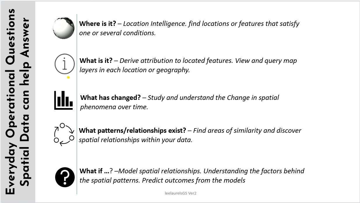 In managing the day-to-day operational activities, situational awareness, and with attendant decision requirements, some of the questions below come up, and most times would require answers quickly and with possible visualisations